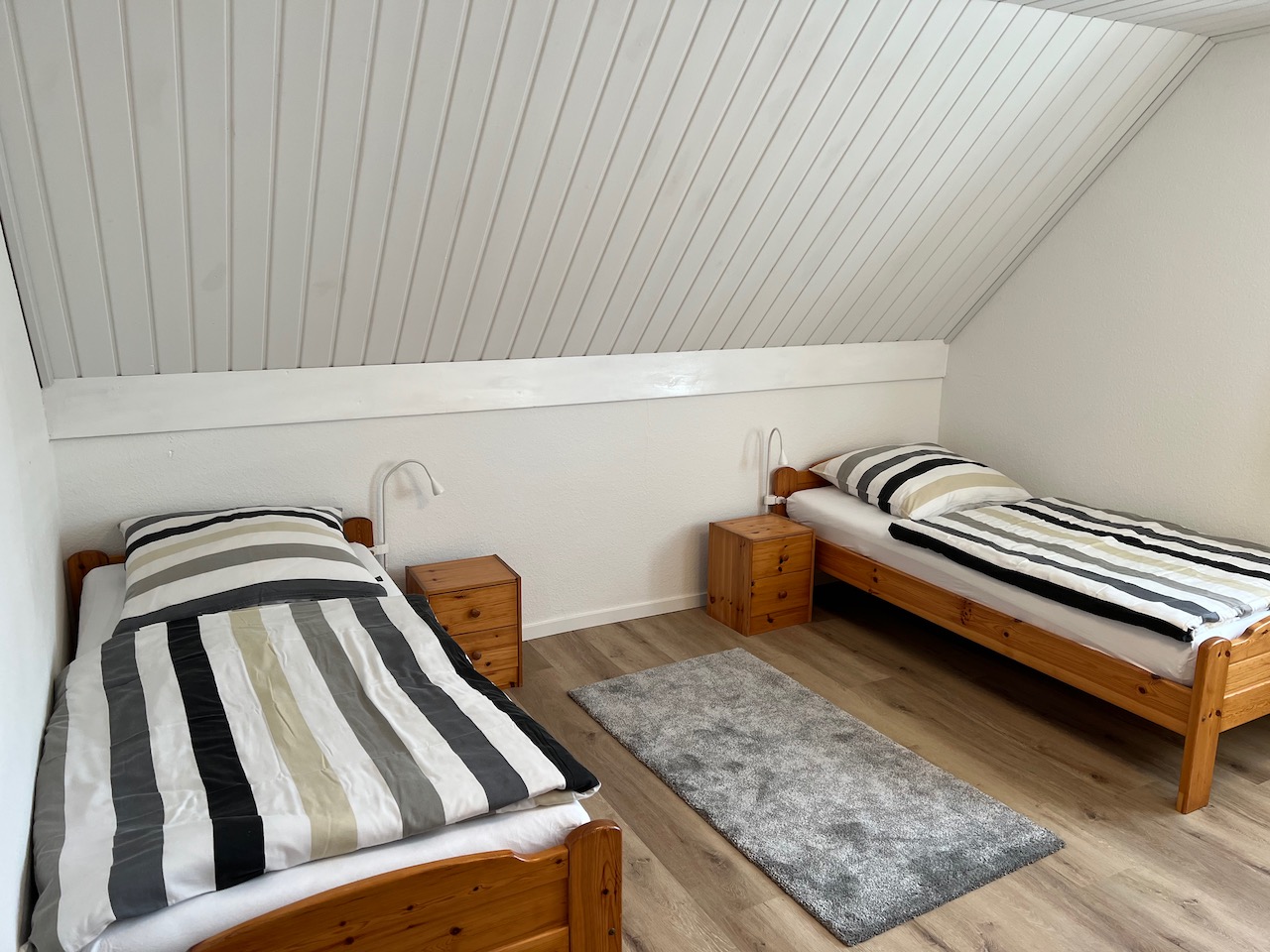 Schlafzimmer, davon eines mit Doppelbett und eines mit zwei Einzelbetten.